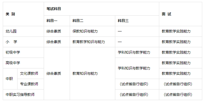1.笔试各科目均采用纸笔方式。笔试各科考试时间均为120分钟。 2.面试采用结构化面试、情景模拟等方法,通过备课、试讲、答辩等方式进行。使用教育部考试中心统一研制的面试测评系统。