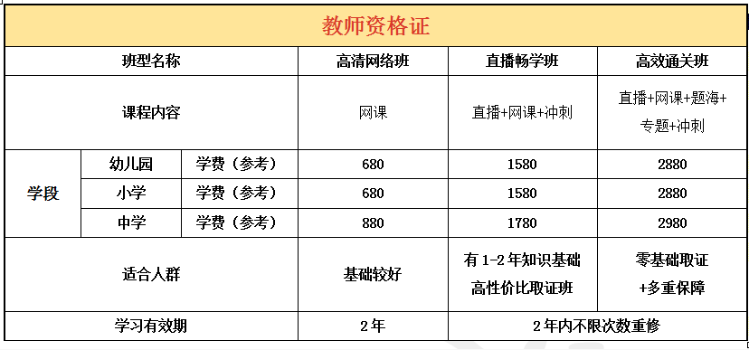 教师资格证考前培训招生简章
