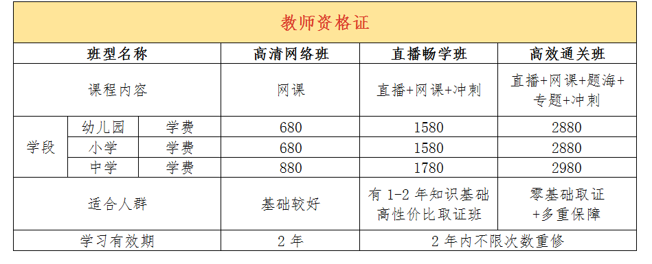 教师资格证考前培训招生简章
