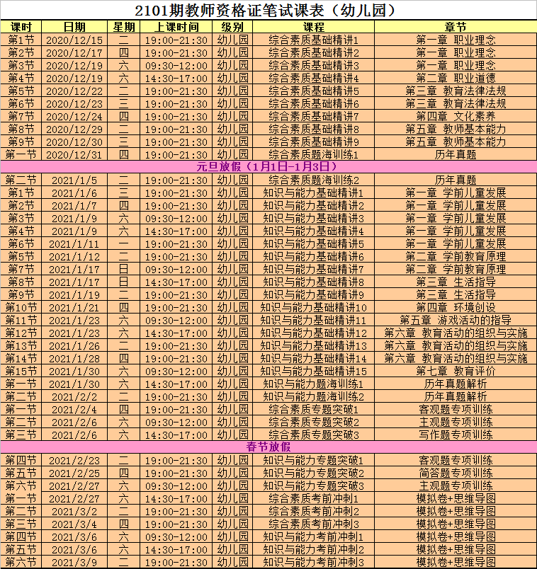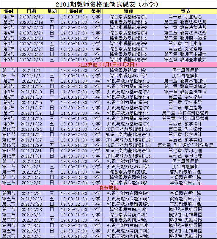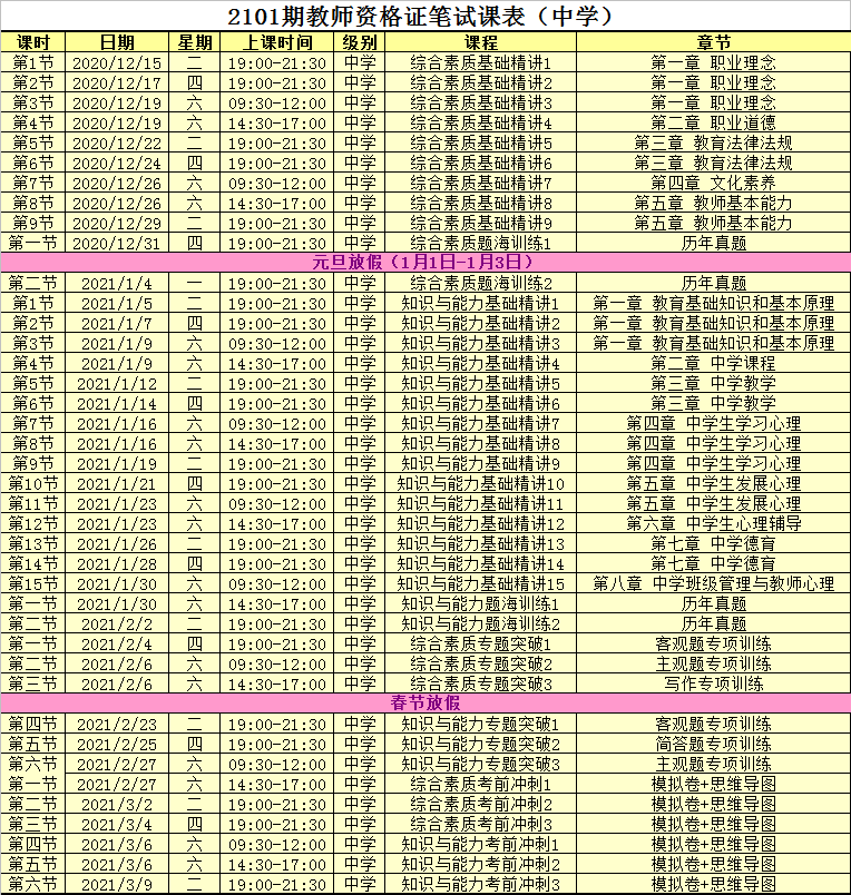 2、2103期教师资格证培训班课程表