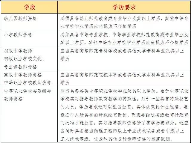 1. 中华人民共和国公民;拥护中国共产党领导,拥护社会主义制度;无犯罪记录。 2. 原则上应具备《教师法》规定的相应学历条件,并应符合本省确定并公布的学历要求。 3. 应届在校生报考中小学教师资格考试应提供学校出具的在籍学习证明。 4. 各种教师资格应当具备的学历要求(各省报考条件有所不同,具体需看各省报名公告)