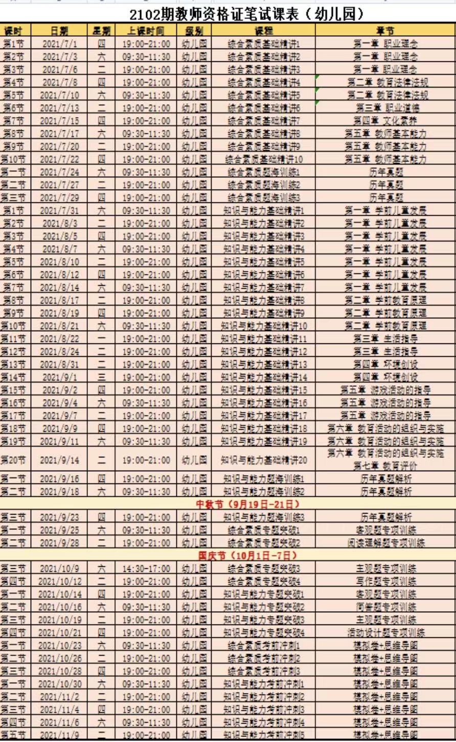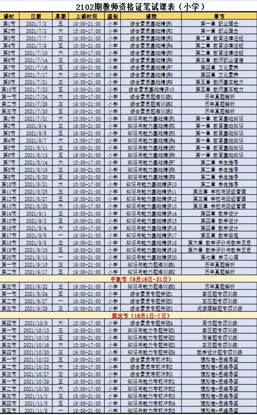 2、2102期教师资格证培训班课程表