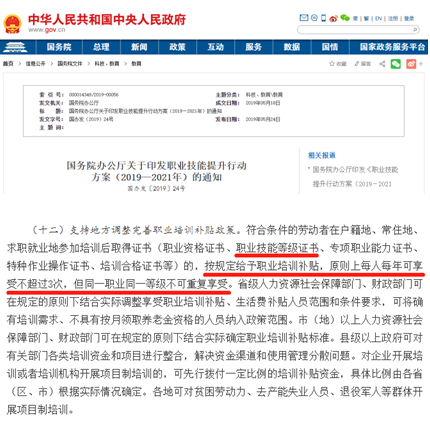 1. 国务院办公厅关于印发职业技能提升行动方案(2019—2021年)的通知