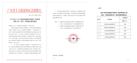 2. 截选《关于公布2020年职业技能提升补贴第二批新增补贴工种(项目)和补贴标准的通知》粤人社函[2020]295号文