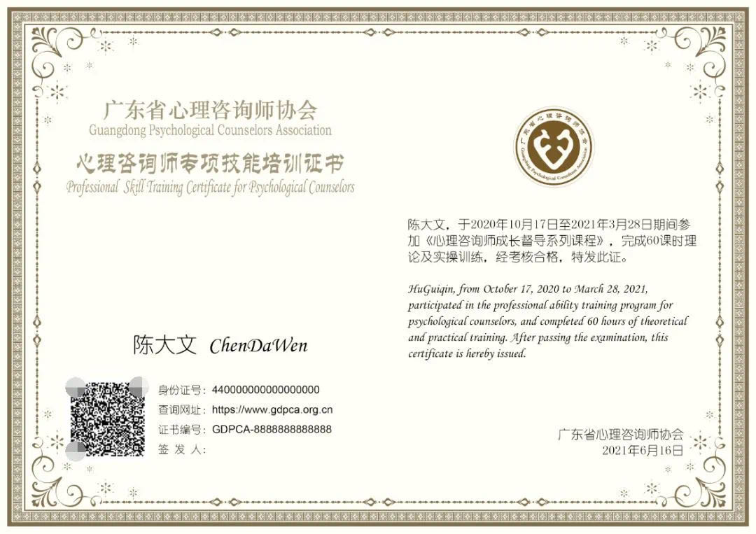 ● 学时:获得广东省心理咨询师协会官方培训、督导时数认证