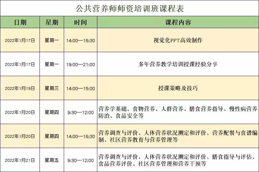 重磅:首期公共营养师师资培训班招生了!来源:金年会6766 发布时间:2022-01-08