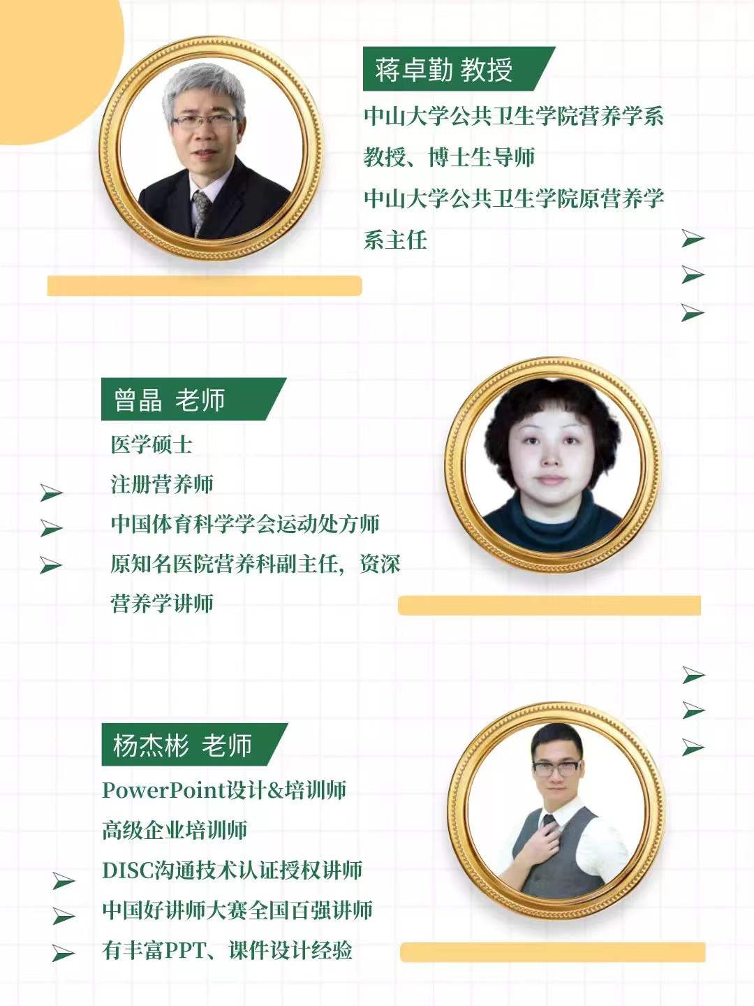 本次培训班由金年会6766,广东省公共营养师社会培训评价联盟联合举办。本期培训班邀请了中山大学等知名院校教授授课,为大家带来更前沿、深入的营养学拓展与营养教学培训授课技巧课程;同时还有资深高级企业培训师为大家带来关于讲演课件制作的干货教材,提升大家的讲演课件制作能力。
